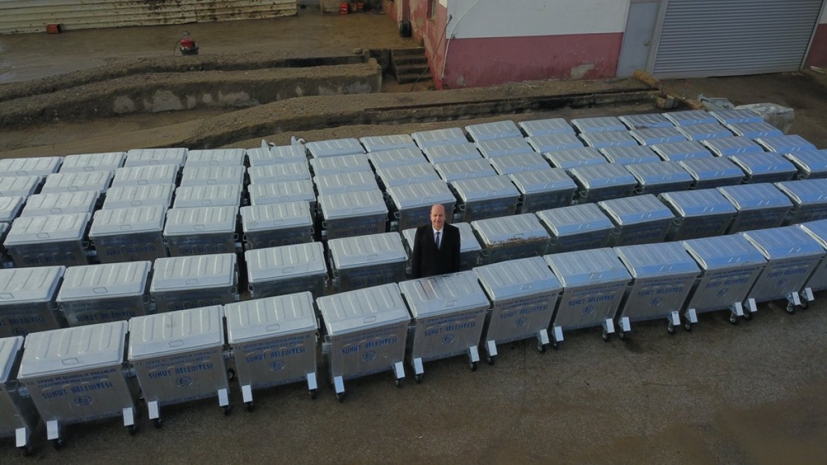 Şuhut Belediye Başkanı Recep Bozkurt'un girişimleriyle Sıfır Atık projesi kapsamında Şuhut Belediyesine 90 adet çöp konteyneri hibe edildi.