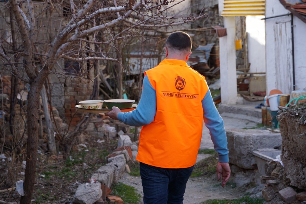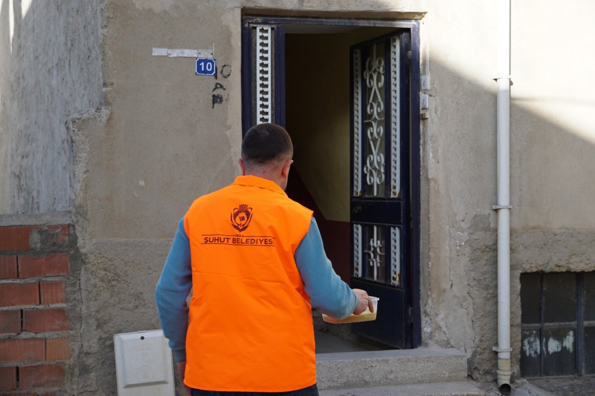 Bu kapsamda Şuhut Belediyesi Yemekhanesinde günlük 1500 kişilik sıcak yemek pişiriliyor. Yemekhanede, pişirilip paketlenen iftar yemekleri dağıtıma hazır hale getiriliyor. Yemeğin evlere dağıtımı da yine Şuhut Belediyesi tarafından gerçekleştiriliyor.