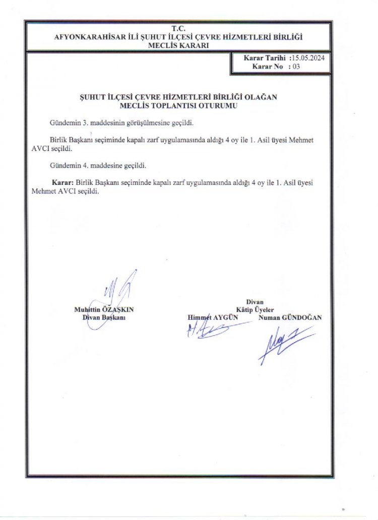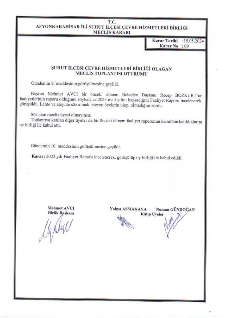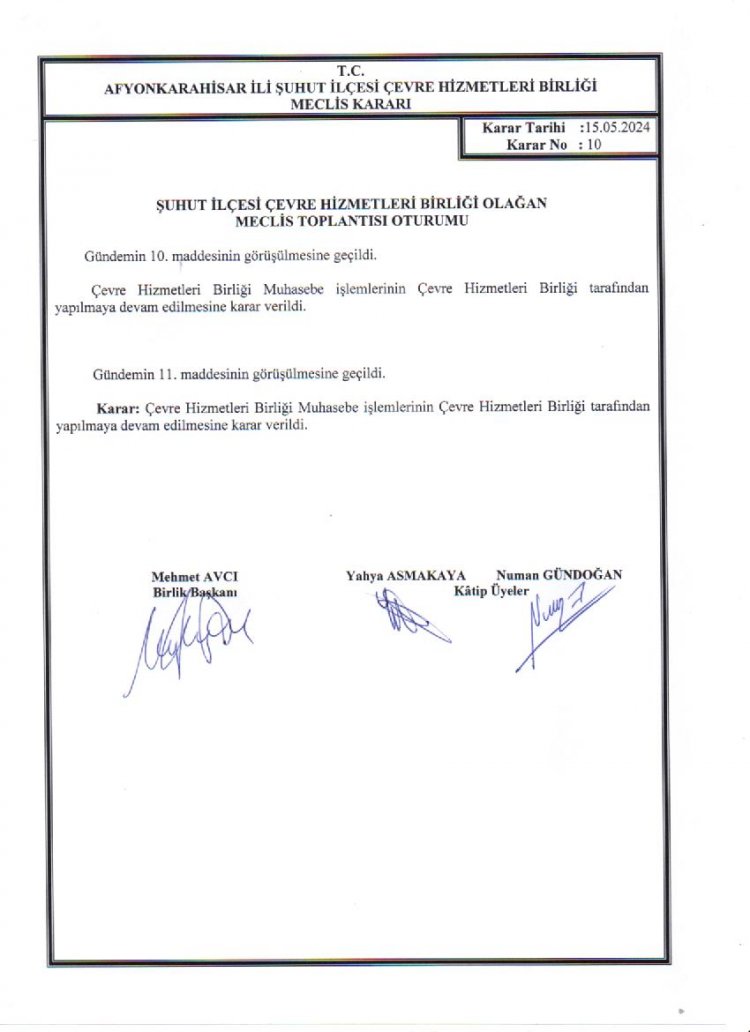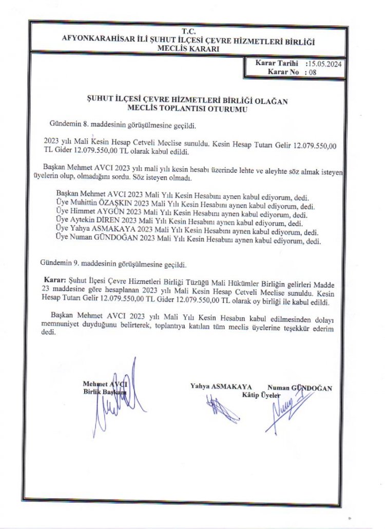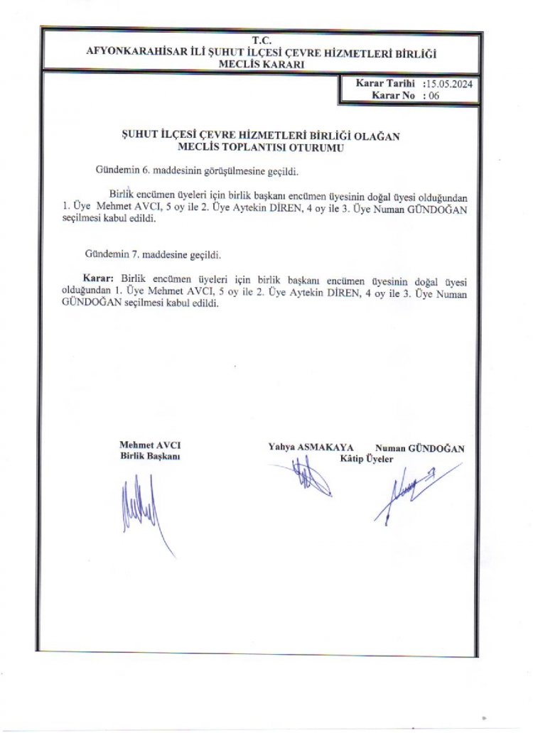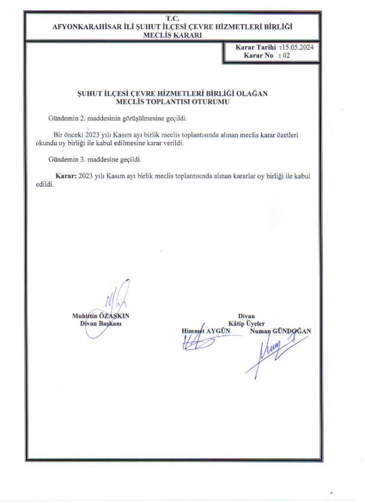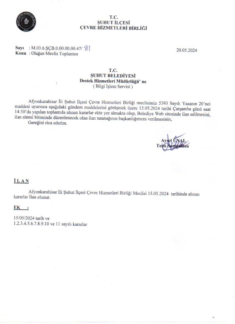 ÇEVRE HİZMETLERİ BİRLİĞİ OLAĞAN MECLİS TOPLANTISI KARAR ÖZETLERİ