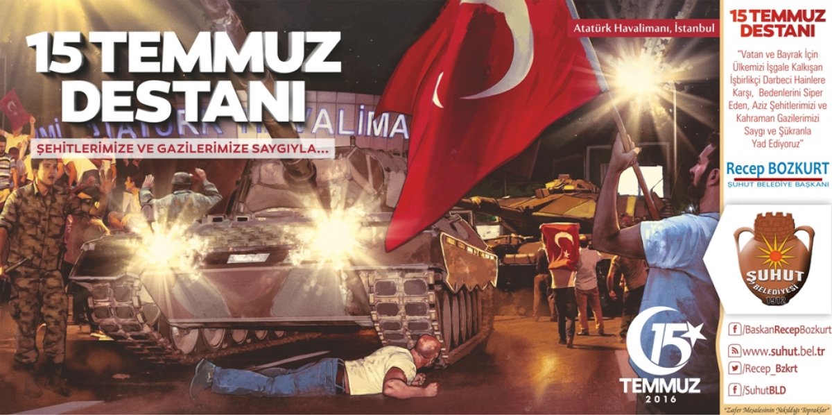 Şuhut Belediye Başkanımız Recep Bozkurt, 15 Temmuz alçak darbe girişimin yıl dönümü münasebetiyle bir mesaj yayınladı. Başkan Bozkurt, Fetöcü hain işbirlikçilerin Ülkemizi işgale hazırlamaya çalıştığını ve bunun aziz milletimizin karşı koymasıyla engellendiğini kaydetti. Başkan Bozkurt, "Hainler uçaklarıyla, tanklarıyla, helikopterleriyle Milletimizin iradesini hedef almış, ülkemizin bölünmez bütünlüğünü hedef almıştı. Hainler sivil vatandaşlarımızı ve vatansever askerlerimizi vahşice şehit ettiler. Cumhurbaşkanımız ve Başkomutanımız Recep Tayyip Erdoğan'ın çağrısıyla meydanları dolduran milyonlarca kahraman Türk milleti hainlere en güzel cevabı vererek darbelerini boşa çıkararak büyük bir kahramanlık örneği gösterdi. Ülkemizi içeriden ve dışarıdan müdahalelere açık hale getirmeyi hedefleyen bu hain girişim Cumhurbaşkanımız ve hükümetimizin dik duruşu tüm siyasi partilerin darbe karşıtı açıklamalarıyla son buldu. O gece cennet vatanımız, mübarek bayrağımız ve aziz milletimizin geleceği için canları pahasına meydanları dolduran tanklara karşı duran, hain kurşunlara kendisini siper eden, vatan için serden geçen 249 vatan evladı hainlerce şehit edildi, 2195 vatan evladı gazilik şerefine ulaştı. Bir kez daha tüm şehitlerimizi minnet ve şükranla anıyor, gazilerimize şükranlarımızı sunuyor ve sağlıklı bir ömür diliyorum" dedi. 15 Temmuz gecesinin Kurtuluş Savaş'ından bir farkı olmadığına değinen Başkan Bozkurt, darbenin başarılı olması halinde Türkiye'nin iç ve dış düşmanlar tarafından işgale açık hale getirilmek istenildiğini vurgulayarak "15 Temmuz Milletimizin Bir destanıdır, Kahramanlığıdır ve Milletimiz binlerce yıllık tarihinde bu hainliğin bir benzerini daha görmemiştir." dedi. Başkan Bozkurt, "Feto denilen alçak kuklanın talimatıyla başlatılan darbe girişiminin hedefi Cumhurbaşkanımız Recep Tayyip Erdoğan, Devletimiz ve Türk Milletiydi. Ancak bu alçak hain ve işbirlikçileri emeline milletimizin dik duruşu ile ulaşamadı. Fetöcü hainlerin hesap etmediği tek şey beşeri planda milletimiz ve onun temsilcisi olan Cumhurbaşkanımızdı" dedi. Başkan Bozkurt, Türkiye'nin darbelerden ve darbecilerden çok çektiğini Ülkemizde her on yılda bir darbe yapıldığını ancak 15 Temmuz'da millet tarafında hainlere darbe vurulduğunun altını çizdi. Dünyanın en kanlı darbe girişiminin 15 Temmuz'da yaşandığına dikkat çeken Başkan Bozkurt, O hain gecenin unutulmasının mümkün olmadığını, o gece Şuhut meydanlarını Cumhurbaşkanımızın çağrıyla dolduran binlerce Şuhutluya da teşekkür ederek, "O gece cesaretiyle, metanetiyle büyük bir kahramanlık destanı yazan Şuhutlu hemşehrilerimize ve aziz milletimize ne kadar teşekkür etsek az gelir" dedi. Başkan Bozkurt mesajında "Bu duygularla 15 Temmuzu ve o gece yaşananları asla unutmayacak, unutturmayacağız. Vesile ile tüm şehitlerimize bir kez daha Allah'tan rahmet, kederli ailelerine ve milletimize başsağlığı, gazilerimize sağlıklı ve hayırlı ömürler diliyorum" dedi. Başkan Bozkurt, son olarak 15 Temmuz Cumartesi günü ilçemiz meydanında gerçekleştirilecek anma etkinlikleri ve 15 Temmuz Demokrasi nöbeti nedeniyle Tüm Şuhut halkını meydanlara davet etti. [gallery link="file" ids="11879,11880,11881,11882,11883,11884,5344"]